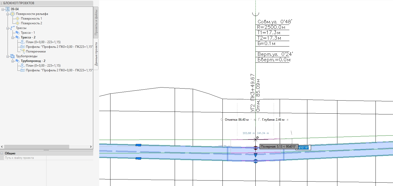 Полная информация о проектируемом объекте хранится в цифровой модели данных в оперативной памяти и во внешнем файле в папке проекта. Модель данных динамически связана с графическим объектом Трубопровод на всех чертежах проекта и обеспечивает параллельную работу над проектом.